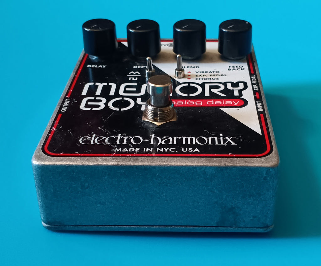 The EHX Memory Boy straps on the cape and flies with heritage into the search for amazing sound at a price that mere mortals can afford. The Memory Boy uses the Deluxe Memory Man as a base, expanding upon it with additional modulation features and an optional Expression Pedal input allowing external control over Delay Time or Modulation Rate. The Memory Boy carries the performance heritage for warm analog delays and modulations that made its ancestors the go to legends that remain today. With two years in design, the focus was making the legend affordable to every musician while maintaining the character and artistic sounds that let you stand apart.
