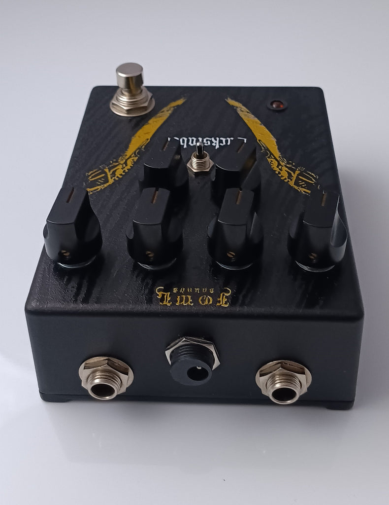 Original signal is run through a highhead overdrive cirucit, Which can be used as a traditional clean blend, or parallel overdrive.