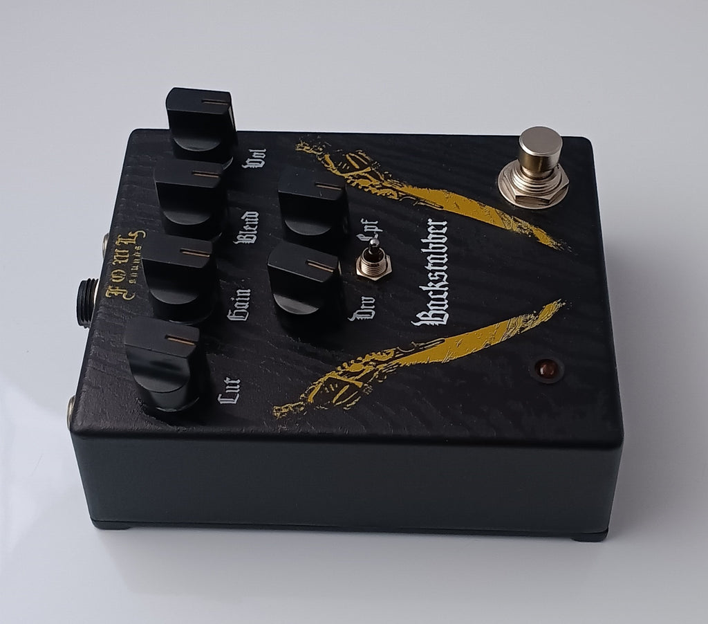 The charge pump lets the op-amp run with more headroom and allows for more quiet operation. The original RAT is known for a specific frequency response do to the inability of its IC to amplify quickly. Instead of chasing unicorns, the Backstabber uses filtering to emulate the frequency response. We are using a more modern IC which results in RAT-like tones that are tighter and more responsive.